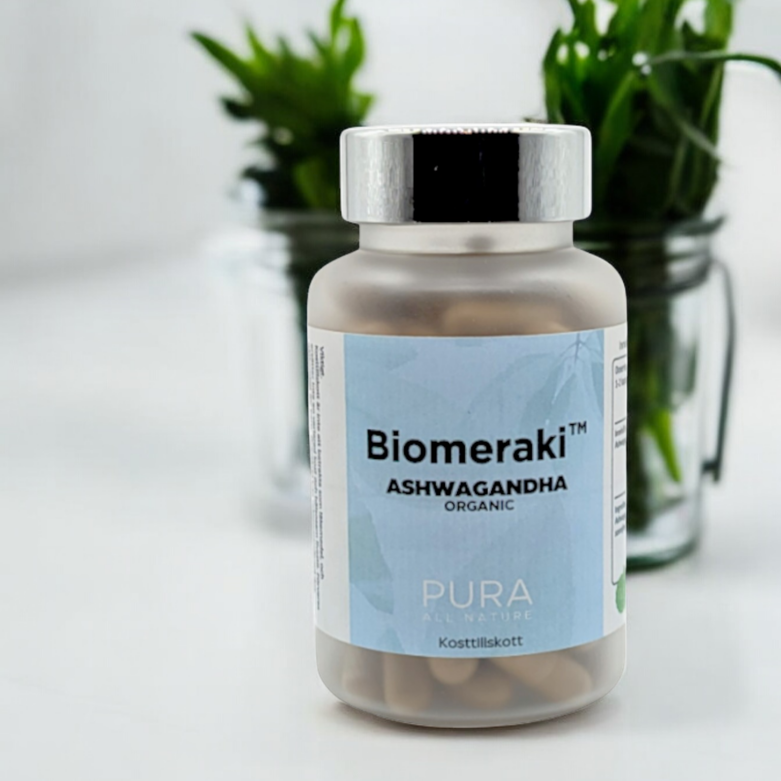 PURA Ashwagandha™ från Biomeraki™ innehåller ett varsamt extrakt av rot från ekologiskt odlad Ashwagandha (Withania somnifera), med ett extraktionsförhållande på 10:1 för maximal koncentration av aktiva ämnen.